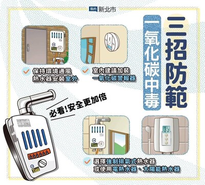 使用燃氣熱水器時,如有頭昏、噁心、嗜睡等情況發生,請立即停止使用熱水器,打開通往室外的窗戶通風,身體嚴重不適時,請先前往通風良好室外環境,再打119電話求助。